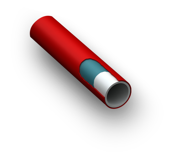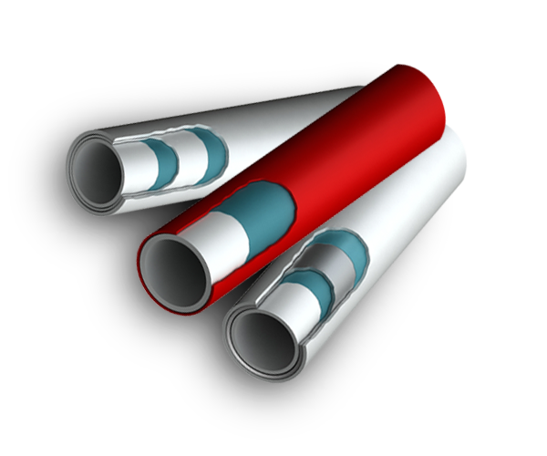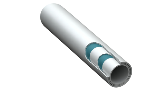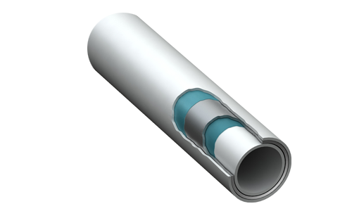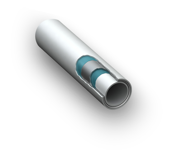 El tubo PE-RT / AL / PE-RT es un tubo compuesto de 5 capas, que incorpora capas de PE-RT y adhesivos, que recubren un núcleo de aluminio.