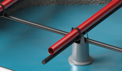 Esto significa que la tubería requiere menos sujeción general al contrapiso o al aislamiento y es menos propensa a combarse donde no está fijada.